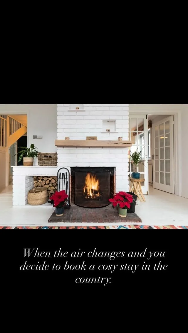 Cosy up and rekindle your spark by the fire at one of our enchanting hideaways, where tranquil nature walks and crackling fires invite you to truly unwind 🔥.
