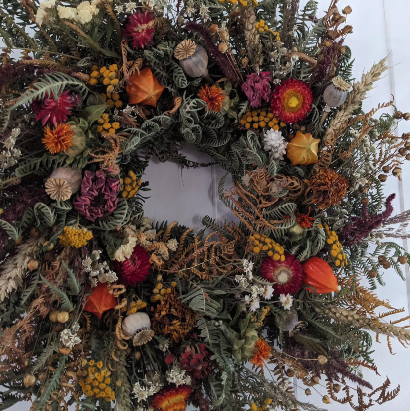 She crafts her stunning dried flower wreaths and decorations from organic blooms grown in her own flower field and foraged sustainably from the surrounding landscape. Her work celebrates the quiet beauty of the seasons and invites us to bring a touch of the wild into our homes, blending traditional craftsmanship with an enduring respect for nature.